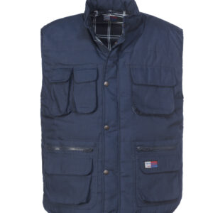 Gilet trapuntato multitasche blu, misto cotone HH296