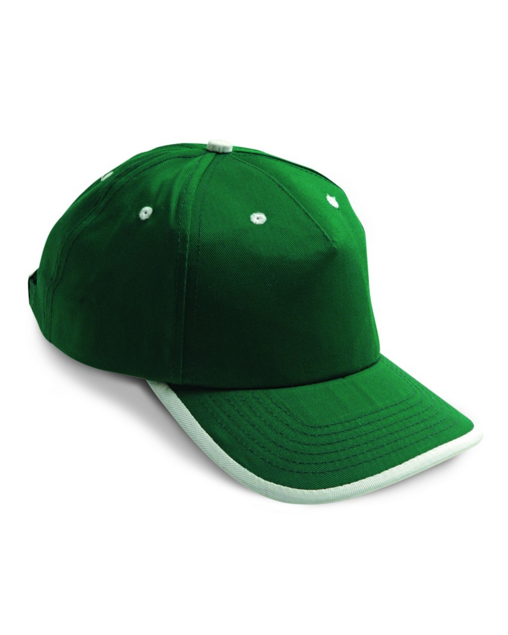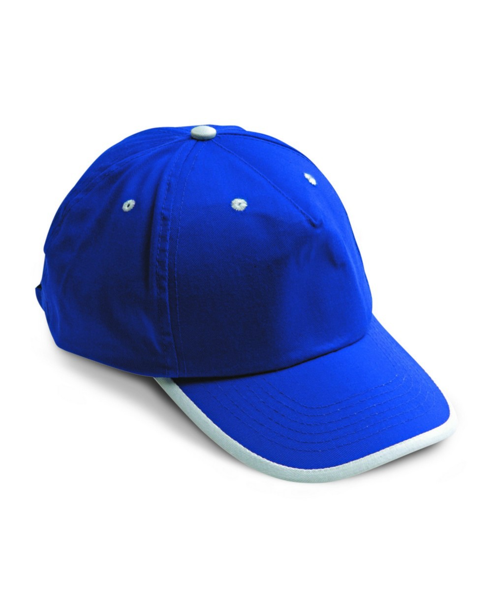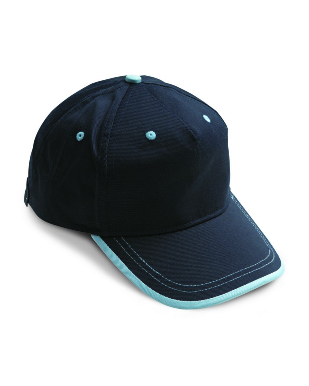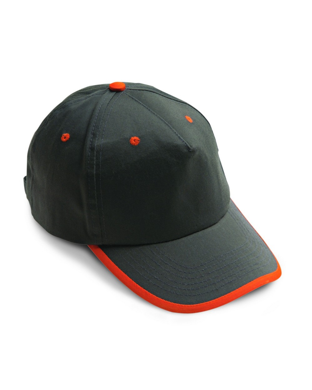 chiusura posteriore in metallo con regolazione di misura, composto da 5 pannelli, con 6 fori di aerazione ricamati con filo di colore a contrasto, pannello frontale rinforzato con profilo di colore a contrasto