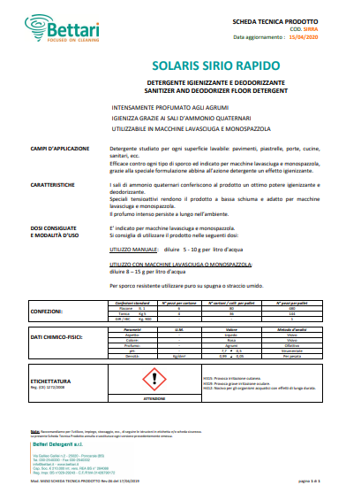 Campi d’applicazione: detergente igienizzante adatto a tutte le superfici lavabili: pavimenti, piastrelle, porte ecc.